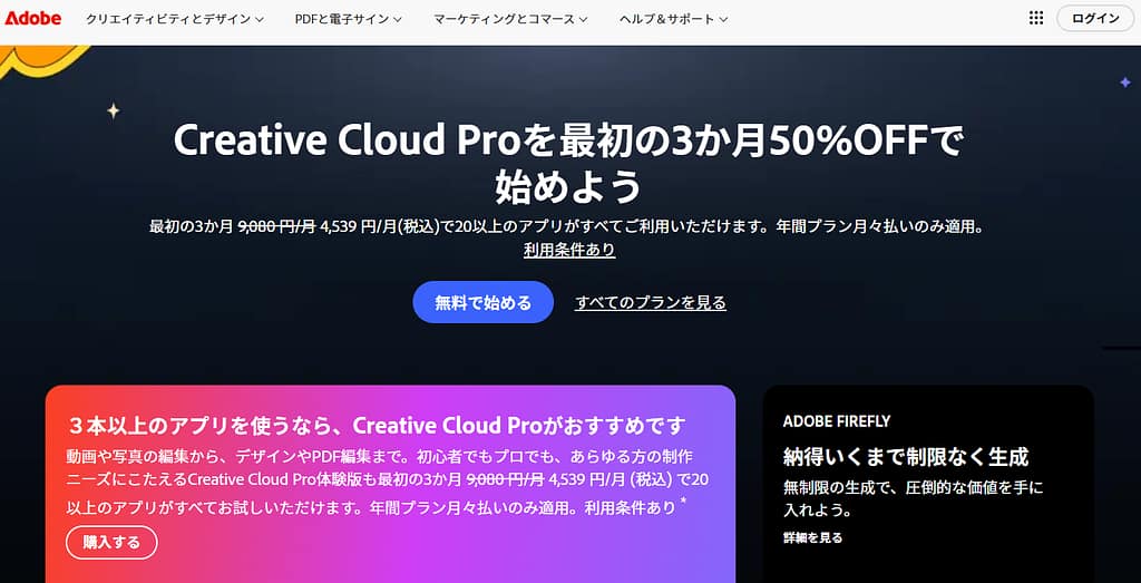 さらに、ターゲットによって日本語ウェブサイトと英語ウェブサイトのユーザーインターフェース(UI)を変えるのも一般的に行われています。例えば、デザインソフトで有名なAdobe(アドビ)のサイトを英語版と日本語版で比べてみましょう。