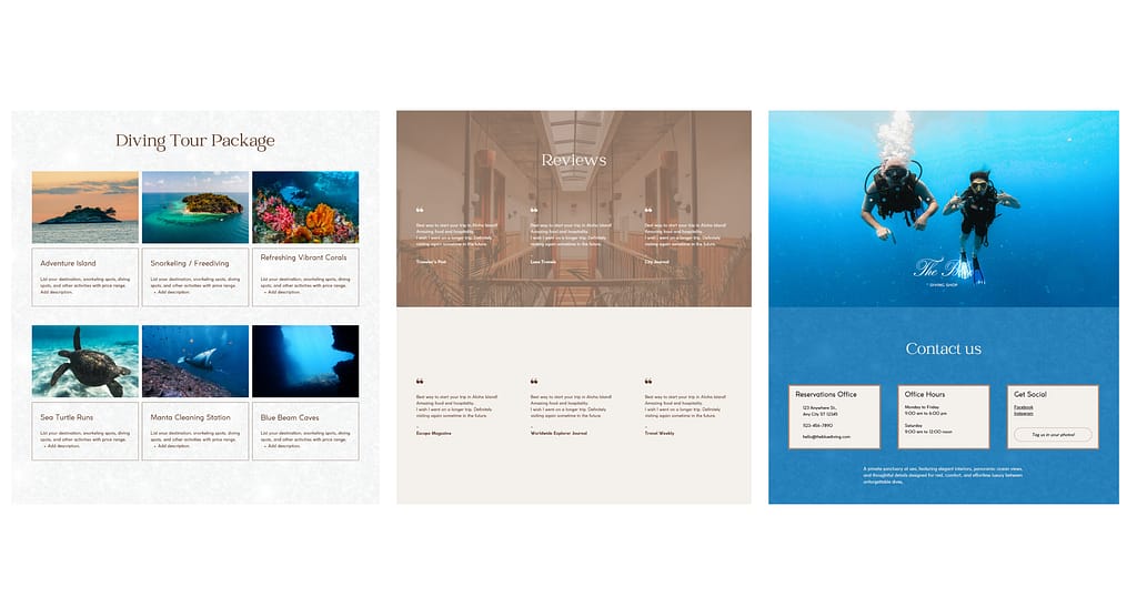 ※参考イメージは「ダイビングショップのボートツアーパッケージ」ですが、業界やジャンルは問いません。個人・法人のどちらでも購入が可能なサイト制作&運用代行サービスになります。